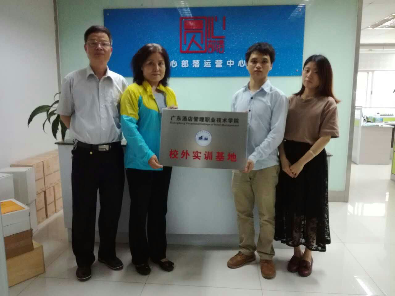 4月25日下午必赢565net官网会计专业负责人王莉丽副教授和实训中心蔡福州主任一行,到东莞虎门与东莞圆心企业事务有限公司签订了校企合作协议并举行了校外实训基地挂牌仪式。